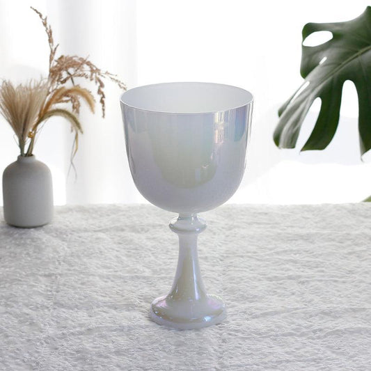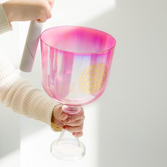 Chalice Singing Bowl, it is made from 99.9% quartz crystal and is shaped like a cup. The appearance can be customized with various exquisite patterns, like Flower of Life.