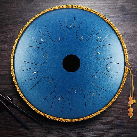 Die Zungentrommel aus Stahl ist mit Schlägeln und Notenblättern ausgestattet. Solange Sie mehr mit den Noten üben, können Sie ein wunderbares Lied spielen, egal ob Sie ein Kind oder ein Erwachsener sind. Für eine perfekte Stimmung mit Lasern geschnitten und von professionellen Handwerkern überprüft, strahlt jedes „Lotusblatt“ der 13 Zungen eine hervorragende Resonanzvibration aus und bietet Ihnen bei jedem einzelnen Tonanschlag ein reines, sanftes und friedliches Klangerlebnis. Die 13-Ton-Stahltrommel kann mit den meisten gängigen Melodien gespielt werden und funktioniert besser als die 11-Ton- Stahlzungentrommel .