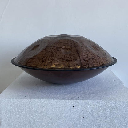 Individuelle Epiphany-Handpan-Trommel – F3 Edelstahl 22 Zoll 9/10/11/12 Noten-- Komplett handgefertigt -- Das Material ist hochwertiger und der Klang schöner. Die Handpan-Trommel von HluruShop ist ein Musikinstrument der Idiophon-Klasse. Sie besteht aus zwei tiefgezogenen Halbschalen mit Hohlraum in der Form einer konvexen Linse. In die Oberseite („Ding“) ist eine zentrale „Note“ gehämmert und um die Mitte herum sind sieben oder acht „Tonfelder“ gehämmert. Die Unterseite („Gu“) ist eine glatte Oberfläche mit einem gerollten Loch in der Mitte und einer gestimmten Note, die erzeugt werden kann, wenn auf den Rand geschlagen wird.