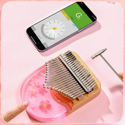 HLURU Kalimba-Daumenklavier mit 17/21 Tasten und flachem Brett, buntes Sakura-Buchenholz + Epoxidharz, C-Ton-Kalimba-Instrument
