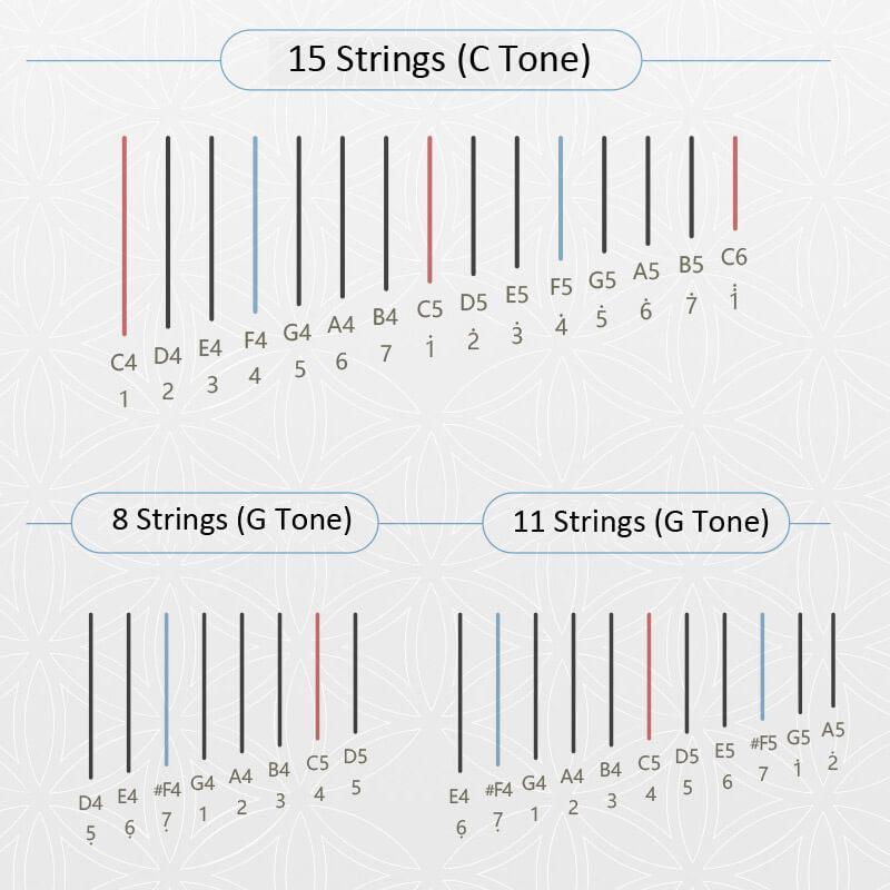 Mondform, 8/11/15 Saiten, C/G-Ton, Ahorn + Lyra-Harfe aus Ulme