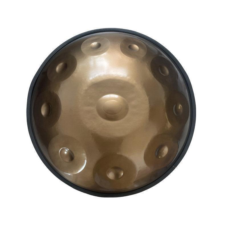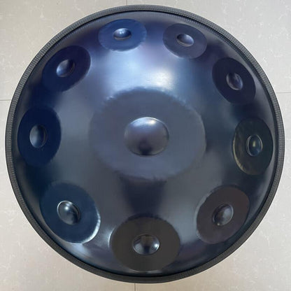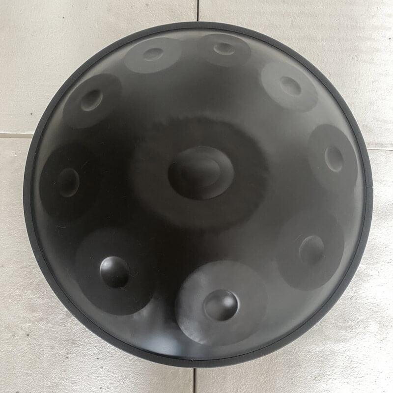 Maßgefertigte Handpan 22‘‘ 10/10+2 Noten F3 Low Pygmy Edelstahl & nitrierter Stahl-- Die Pygmy Handpan bietet ein fesselndes Klangerlebnis, das beruhigende Melodien und harmonische Töne vereint und den Zuhörer in einen heiteren, meditativen Zustand versetzt.