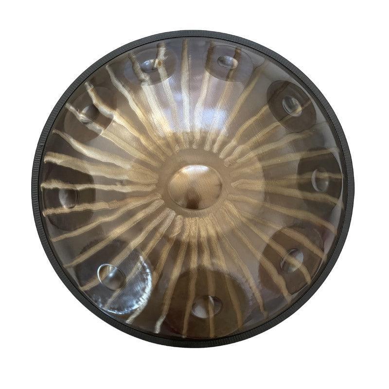 Handpan, individuell gestaltet, Sonnengott, Edelstahl-Handpan, D-Moll, Hijaz-Skala, 22 Zoll, 9/10/12, Anmerkungen-- Die Edelstahl-Handpan wird für ihre hellen, anhaltenden Töne und ihre Rostbeständigkeit geschätzt, was sie ideal für den Einsatz im Freien macht und einen klaren, resonanten Klang bietet, der sich perfekt für meditative und dynamische Darbietungen gleichermaßen eignet.
