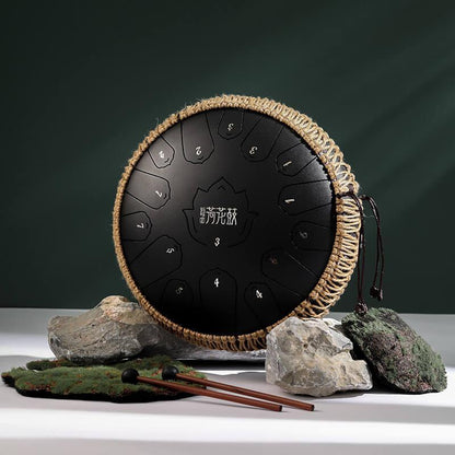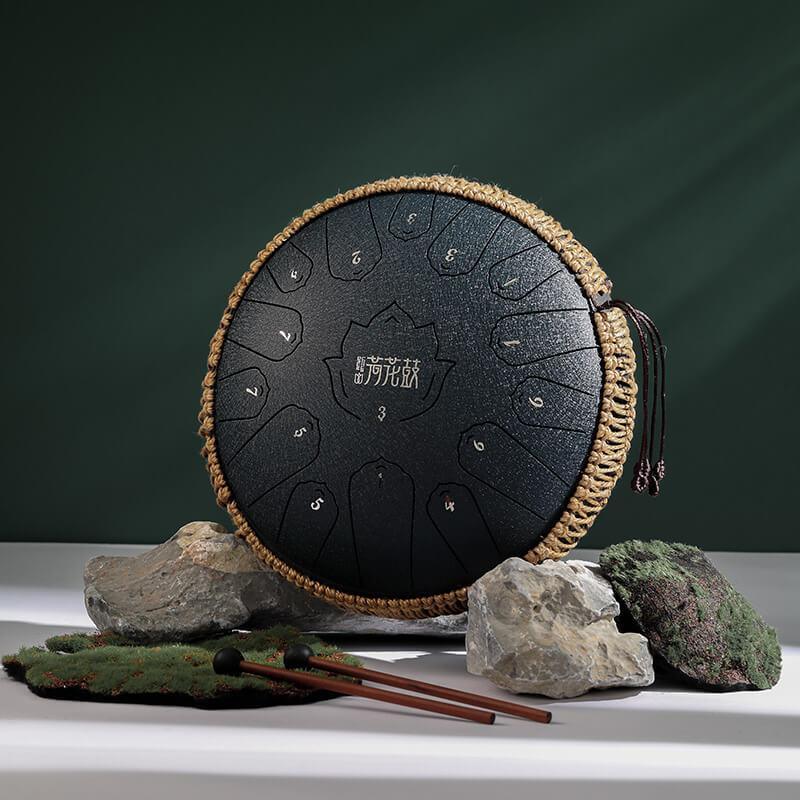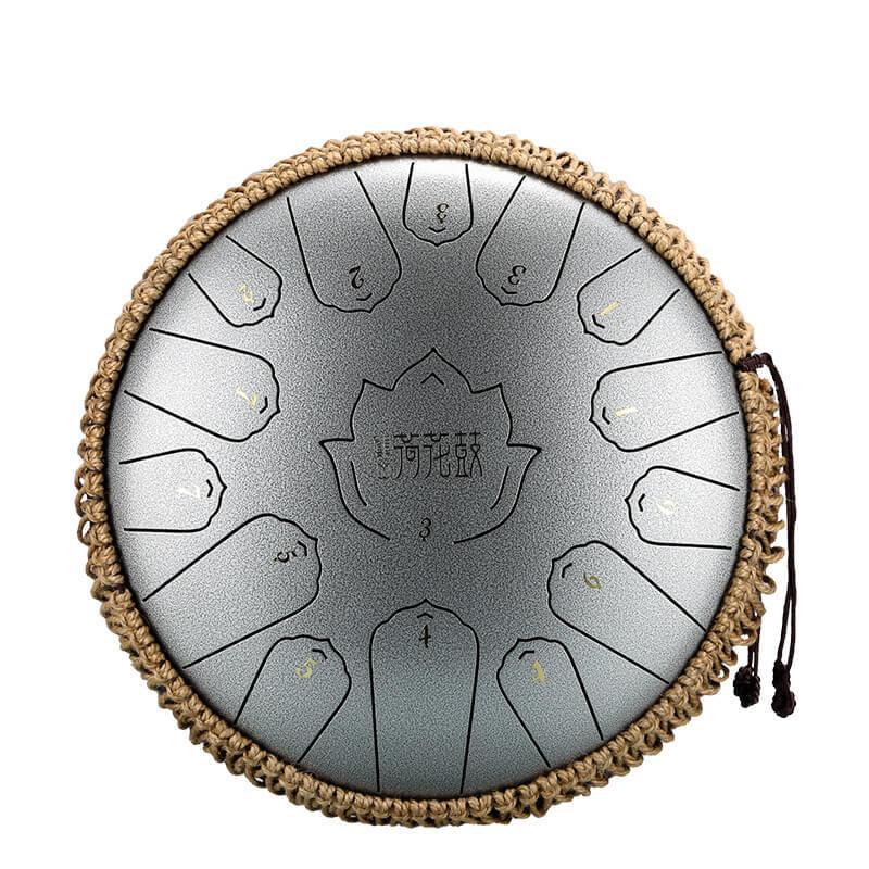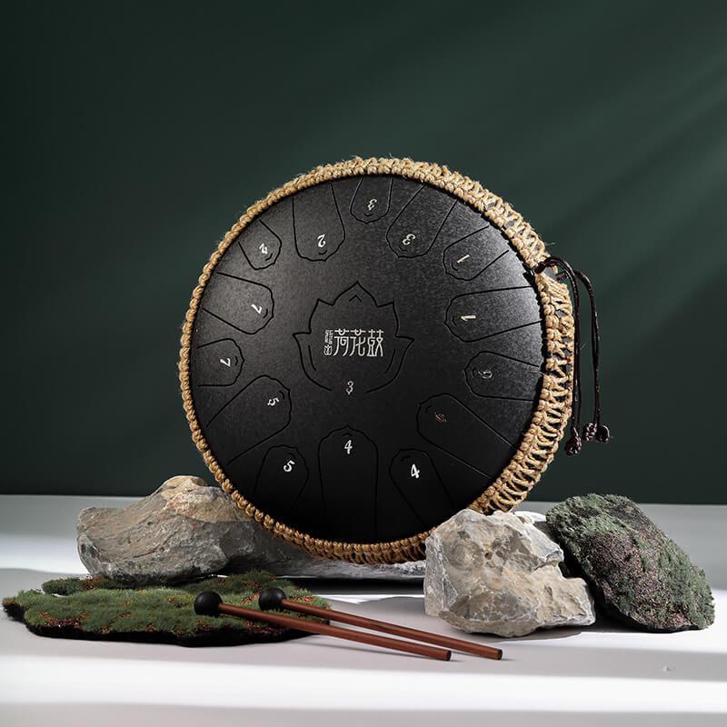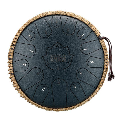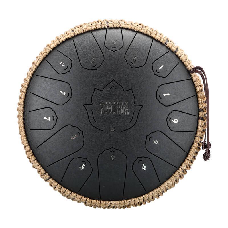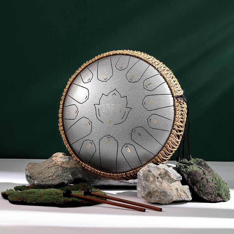 Tambour à langue en acier au carbone HLURU Lotus 14 pouces 15 notes Tambour à langue en do majeur Réservoir de propane