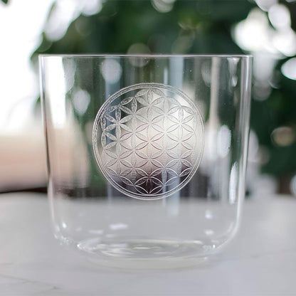 Flower of Life Clear Quartz Crystal Bowl Alchemy Chakra Sound Bowl For Sound Therapy Yoga Meditation - HLURU.SHOP