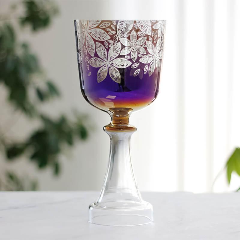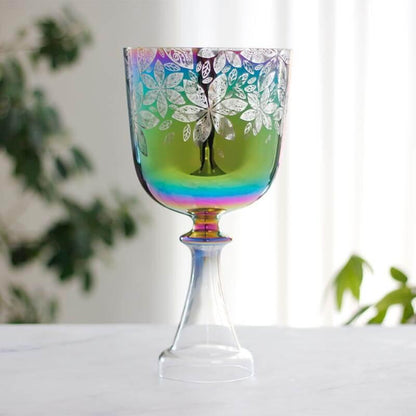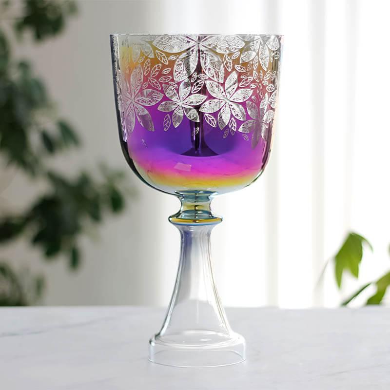 Calice chantant en cristal coloré MiSoundofNature avec motif de fleurs, bol chantant en calice pour méditation, thérapie sonore, bols de guérison des chakras