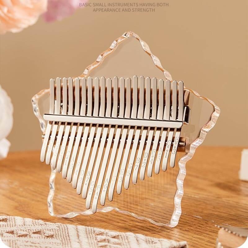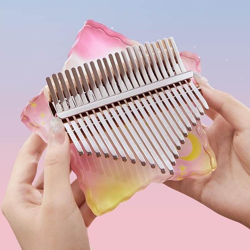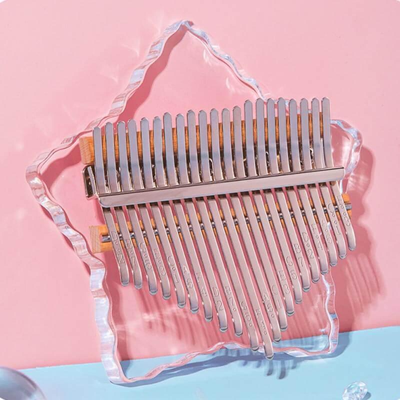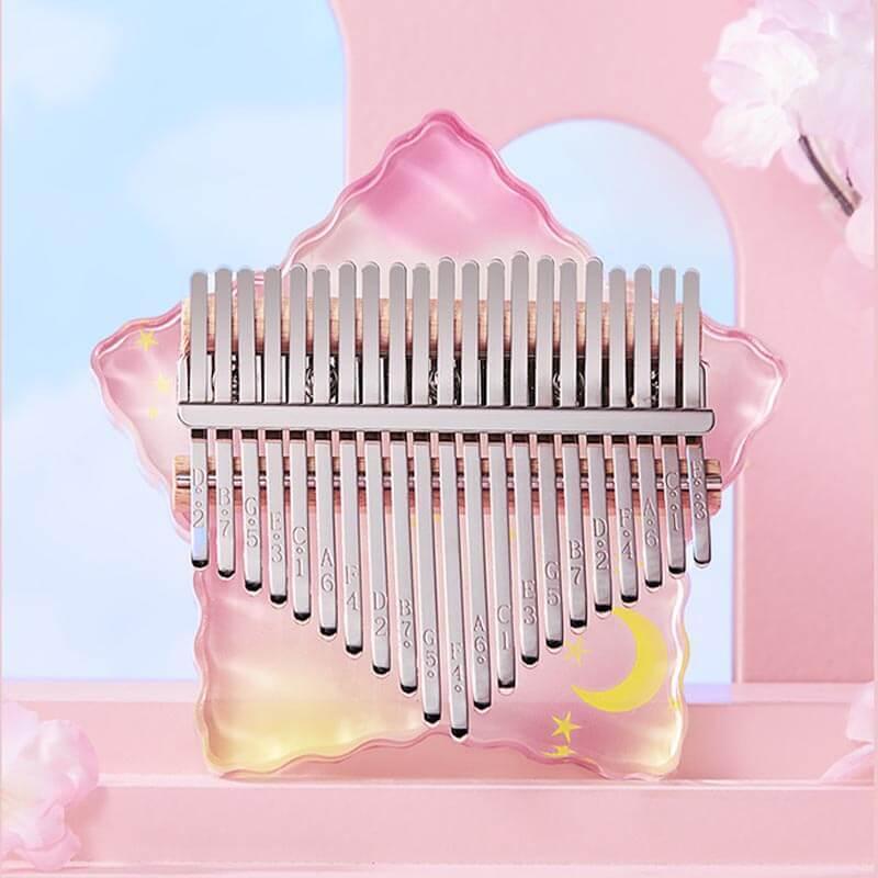 • Les Kalimbas en acrylique (à mon avis) sonnent plus près d'une boîte à musique traditionnelle, avec des tons clairs et chauds. Ils sonnent merveilleusement lors de la lecture de chansons douces ou de berceuses.