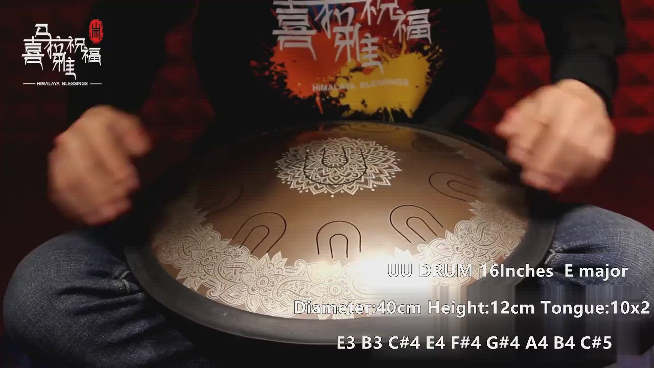 • Conception et artisanat Le tambour à langue en acier Handpan est fabriqué à la main par des artisans et le tambour uu est en alliage d'acier au titane. Le corps du tambour est plein et rond.
