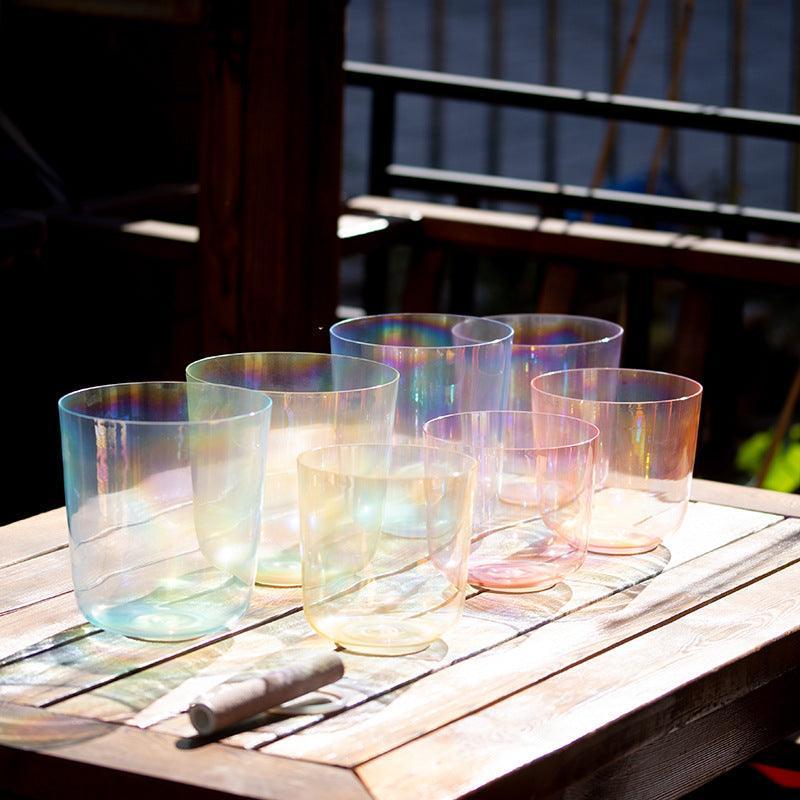 MiSoundofNature Alchemy Clear Crystal Singing Bowl Set Of 7 Cosmic Light Sound Bath Bowl Set