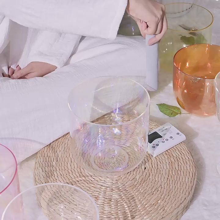 The Alchemy Clear Crystal Singing Bowl Set of 7 is a stunning collection designed for cosmic light healing and immersive sound baths. Each bowl is crafted from premium clear quartz and finely tuned to align with the seven chakras, producing ethereal tones that promote deep relaxation and energy balance. Perfect for meditation, sound therapy, and spiritual practices, this crystal singing bowl set of 7 transforms any space into a sanctuary of healing and tranquility. Ideal for practitioners and enthusiasts seeking cosmic harmony through sound.