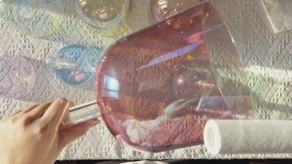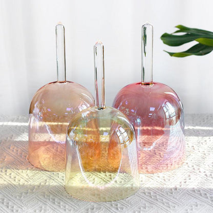 Unlock The Power Of Sound Healing With This Stunningly Crafted Crystal Dreamy Colorful Crystal Bowl With Handle Set. Enjoy the soft frequencies and tones of the bowls for your sound healing session.