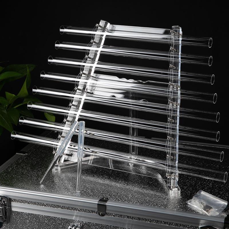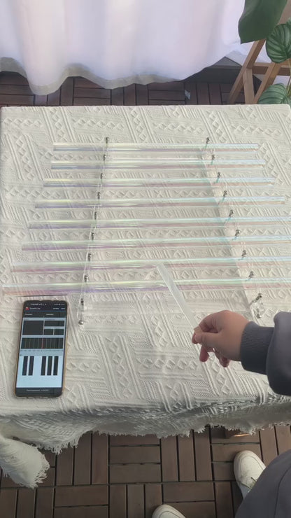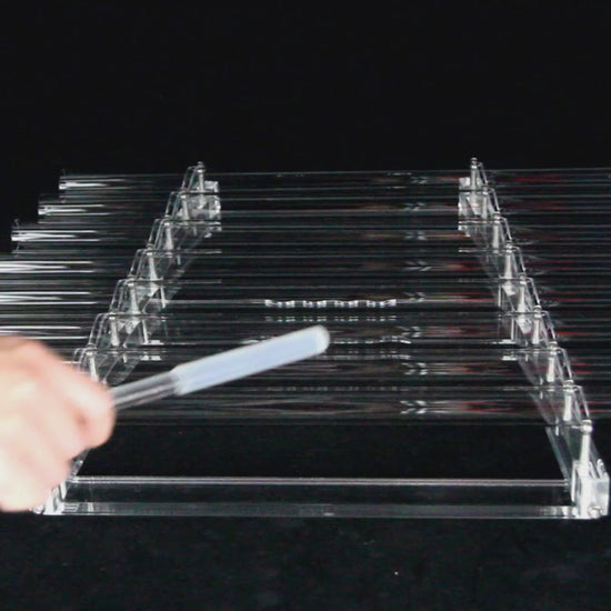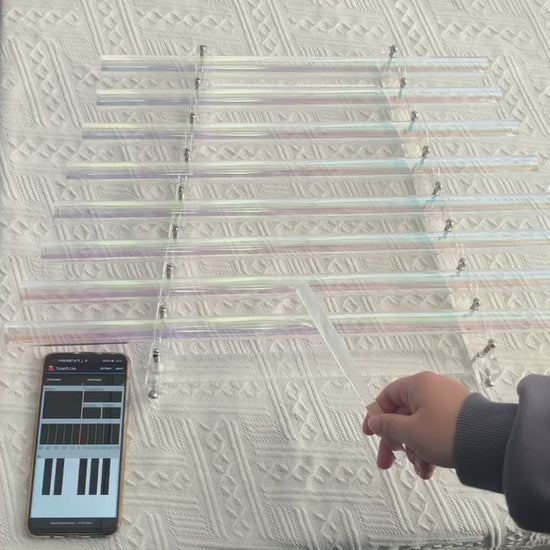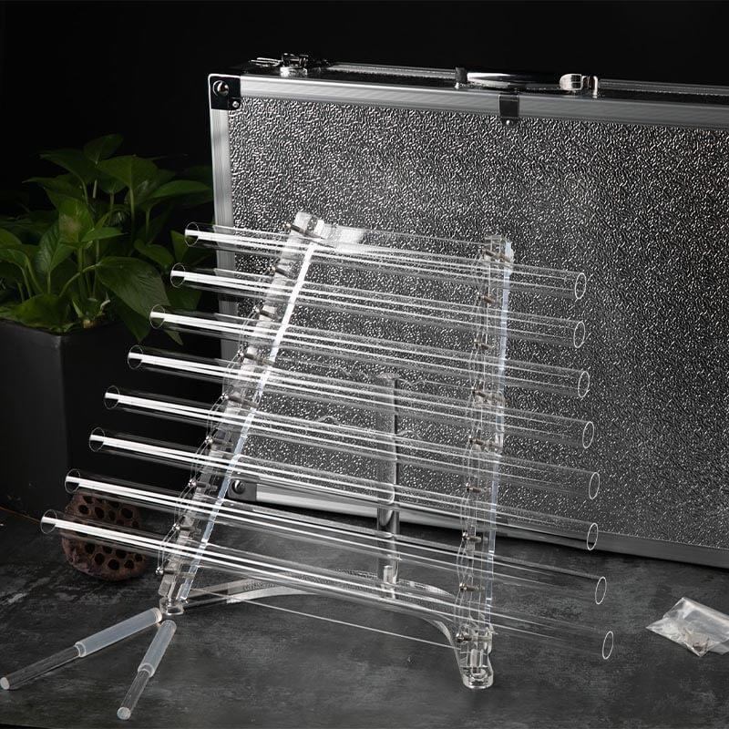 Clear crystal singing harp. Singing harp with C D E F G A B C 8pcs notes. Tuned at 440 HZ or 432 HZ frequency (CDEFGABC Note), the tubes are precisely tuned so the crystal harp can accompany any instrument.