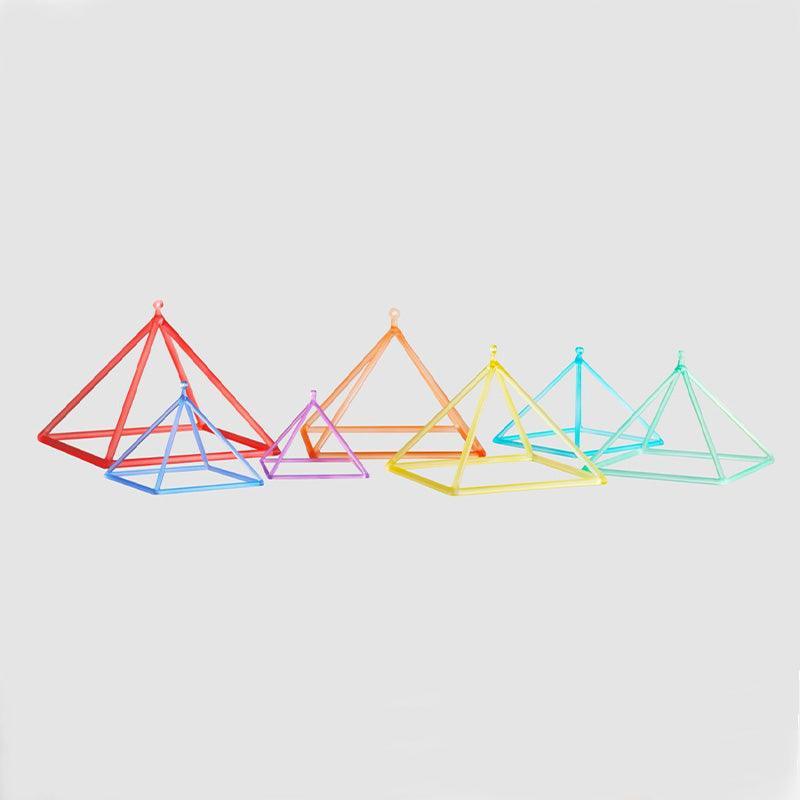 This Clear colorful Crystal Singing Pyramid Set is an amazing sound healing instrument that produces clear and vibrant tones, perfect for calming and restoring your energy. The set includes 3"-14" triangular quartz pyramids that will bring a peaceful and harmonious atmosphere to any space. Use it for meditation, chakra alignment or any other form of energy healing!