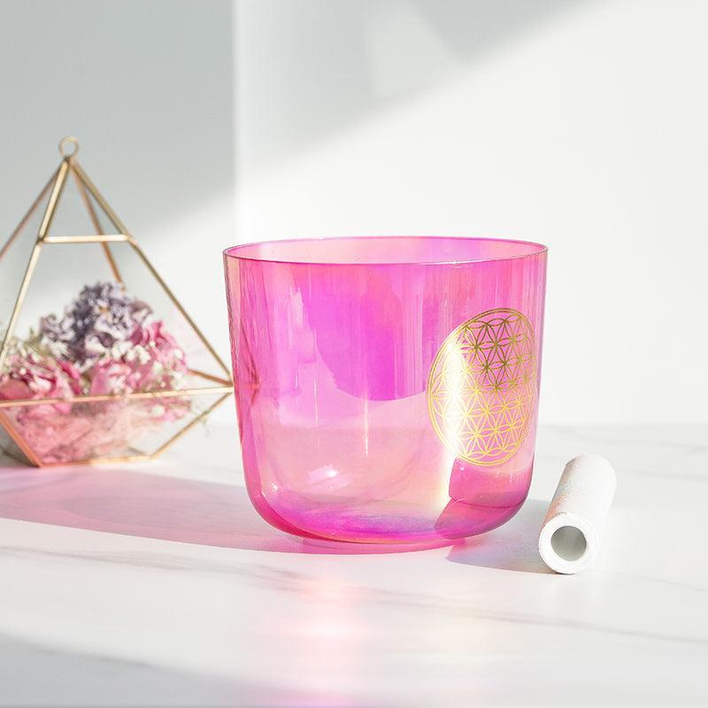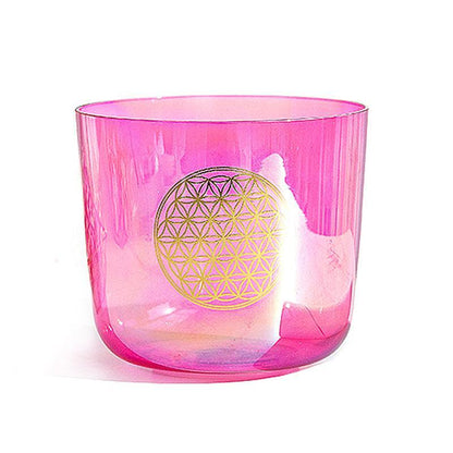 MiSoundofNature Clear Flower of Life Singing Bowl Alchemy Pink Quartz Crystal Sound Bowls