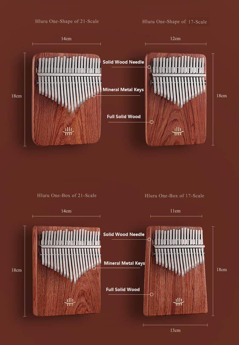 Hluru 21 Key Kalimba Thumb Piano Selecting "Curly Figure" from Zambian RoseWood wood as the generator, It is made of full flat board, and the selected wood is more than 10 years old. All of them are printed with tree rings, and the sound will be more solid and rich. Combining vocal music theory, natural and gorgeous texture, fine and uniform structure, and strong acoustic plasticity.