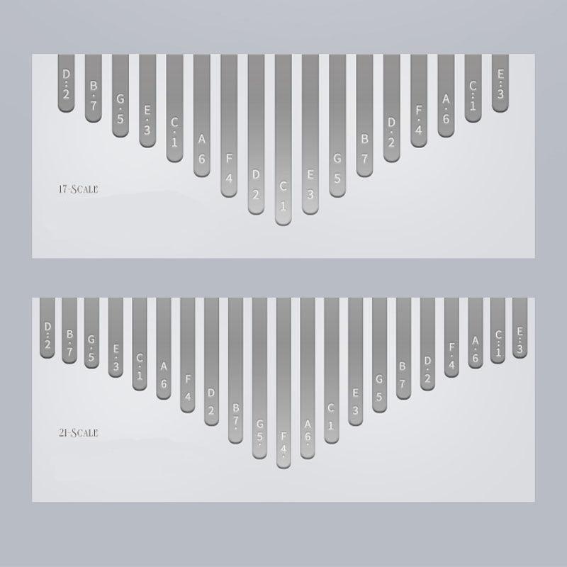 • Scale Range: 17 Keys Kalimbas & 21 keys kalimbas (Ethereal / Longer sustain)