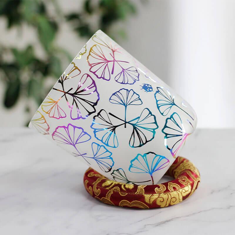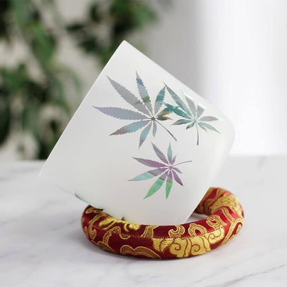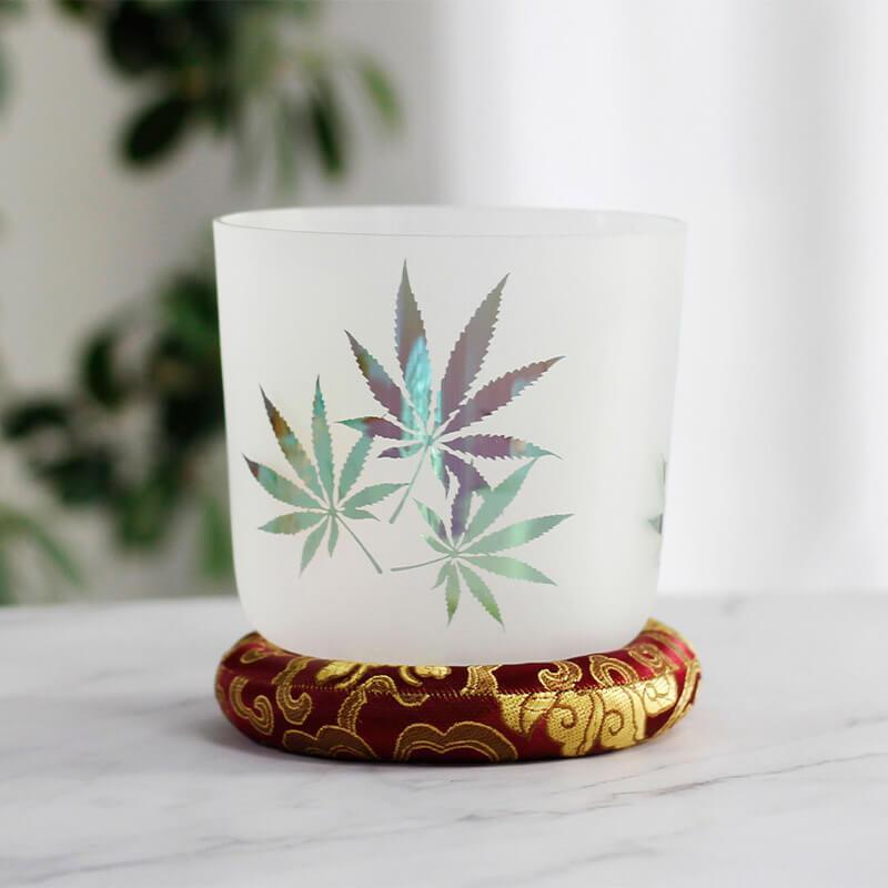 Crystal Handle Singing Bowl Frosted Nature Leaves Design For Sound Therapy Yoga Meditation Bowl - HLURU.SHOP