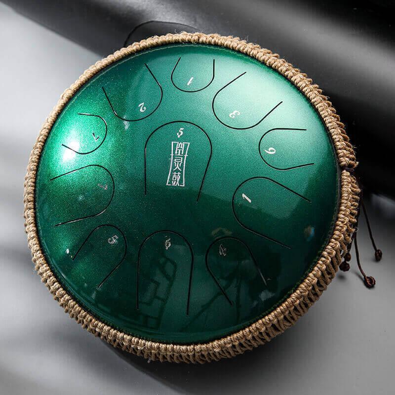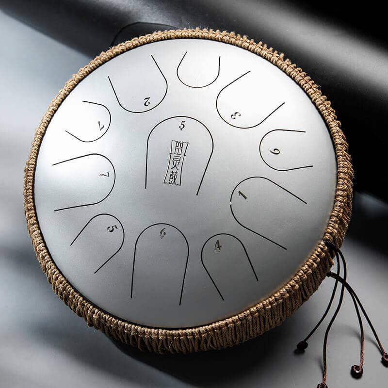 HLURU 13 Inch 11 Note Pearl Paint Titanium Steel Tongue Drum C Major Metal Meditation Drum