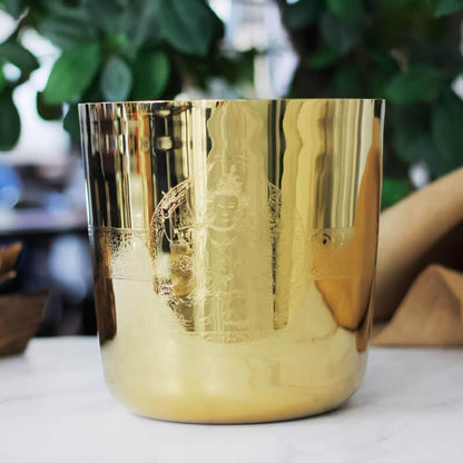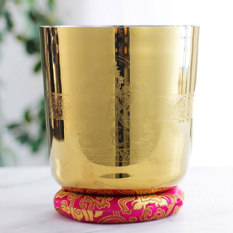 MiSoundofNature Gold 4" - 12" Crystal Singing Bowl with Buddha, Quartz Sound Bowls, Crystal Healing Bowls