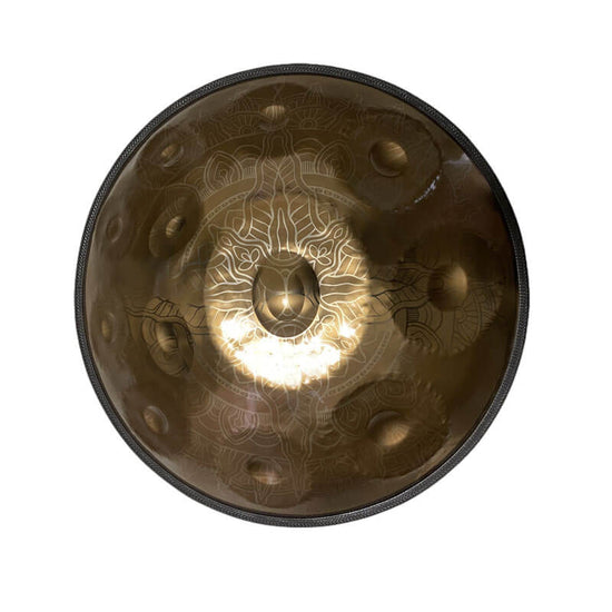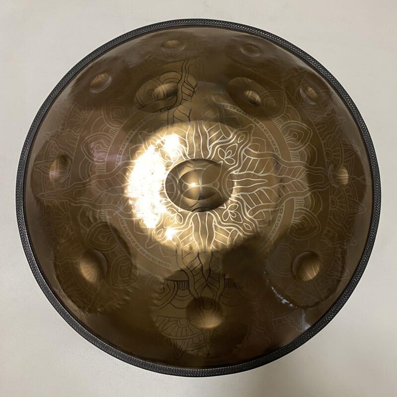 Handmade Stainless Steel Handpans feature intricate designs, like the Stainless Steel Handpan Mandala, which not only enhance their beauty but also influence their sound.